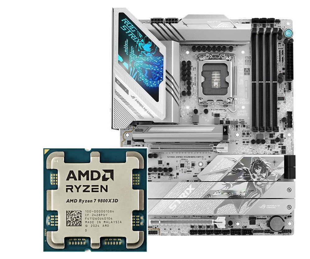我们为锐龙7 9800X3D搭配的是颜值和配置都相当能打的ROG STRIX X870-A GAMING WIFI吹雪主板。其外观上采用银白色调再加上满满的二次元元素,具备超高的颜值。主板配备了16(90A)+2(90A)+2组数字供电,足以应对旗舰级的AM5处理器,锐龙7 9800X3D更不在话下。而且主板还支持AI智能超频和混合双模超频更是可以智能切换单核高频和多核高频模式,让锐龙处理器能够在各种应用环境下都发挥出极致的性能。