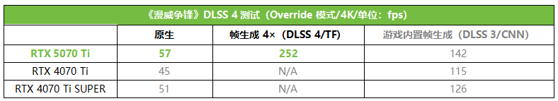 RTX 50系最大的升级就是带来了DLSS 4,在全新Transformer模型加持下,DLSS 4不但能够提供更好的画质和效率,还能通过多帧生成技术巨幅提升游戏帧率。对于RTX 5070 Ti来说,在DLSS 4的加持下,它甚至具备在4K极限画质下畅玩3A游戏大作的能力,这对于使用4K显示器的发烧级玩家来讲无疑是一个极具性价比的卖点。因此,DLSS 4也是本次RTX 5070 Ti首发测试优先关注的部分。同时,在这部分测试中,除了RTX 4070 Ti之外,我们还加入了RTX 4070 Ti SUPER进行对比。