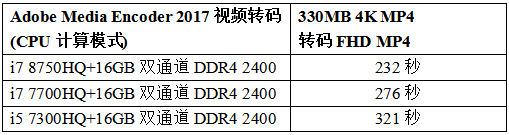 另外,在很多专业应用领域,核心数量更多的第八代酷睿是显然更有优势的。举个最简单的例子,全民都在玩视频,里面经常都会要用到视频转码这个应用。而大部分视频转码软件对处理器的核心数量是很敏感的。来看个测试项目: