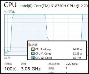 前面提到,如果如此高的基准得分是考超标的高功耗得来的,那么实际价值会大幅降低。那i7 8750H的实际运行功耗究竟有多大呢?会远远超过标称的TDP 45W吗?我们测试的游戏本压得住吗?