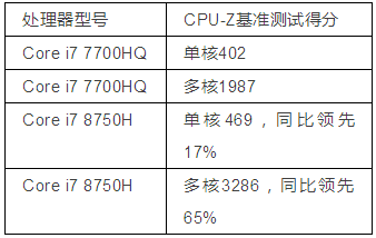 ■处理器:Core i7 8750H(6/12,基准频率2.2GHz,最高睿频4.2GHz)