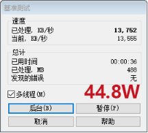 ▲这里有一个比较准确的较长时间运行功耗——我在测试WinRAR的数据时,跑了很多次,而且一直在观察CPU功耗。大家可以看到最高得分是13752KB/s,而长时间运行后,得分会稍微降低一点,13555KB/s——对应的CPU实时封装功耗是44.8W。实际上,如果是单一的CPU运行功耗,大部分中高端游戏本是能够压住44.8W的,毕竟i7的标准TDP是45W——而TDP的意思就是“热设计功耗”,也就是英特尔针对不同处理器,给PC厂商的散热设计(散热模组的散热能力)最高参考值。