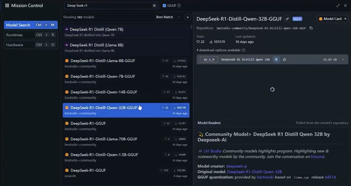 ▲运行LM Studio,选择适合的模型(RX 7650 GRE要在测试版中选ROCm版模型)