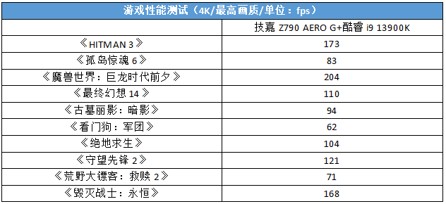 在游戏测试中,这套由技嘉Z790 AERO G+酷睿i9 13900K+技嘉GeForce RTX 4080 16GB AERO OC雪鹰打造出的平台依然发挥出了很强的实力。可以轻松地在4K极限画质下以超高帧率轻松玩转主流游戏大作。
