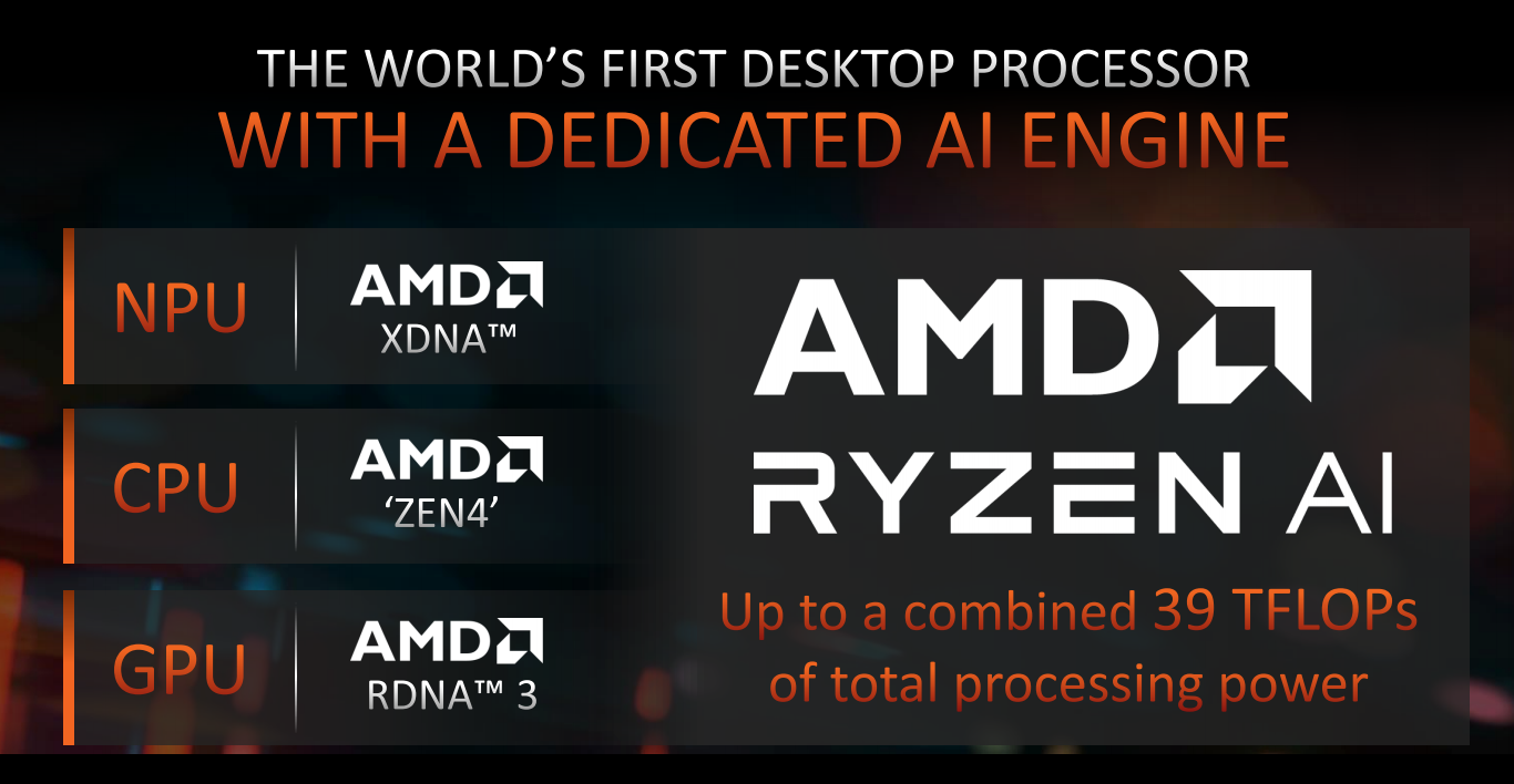 当然,锐龙7 8700G还有真正属于AI时代的“王牌”:内置Ryzen AI引擎打造的NPU。它使用XDNA神经网络计算架构,专用于实现低功耗的AI推理工作。在此之前的X86 PC中,NPU单元通常是独立的PCIe/USB扩展卡外设,例如intel neural Sticker神经棒,需要额外的成本购买。而锐龙7 8700G直接将NPU单元集成,NPU AI算力可达16TOPs,因此它也是首批AI PC台式机处理器,目前支持Ryzen AI引擎的AI应用已经超过100个,并且还在快速增长中。
