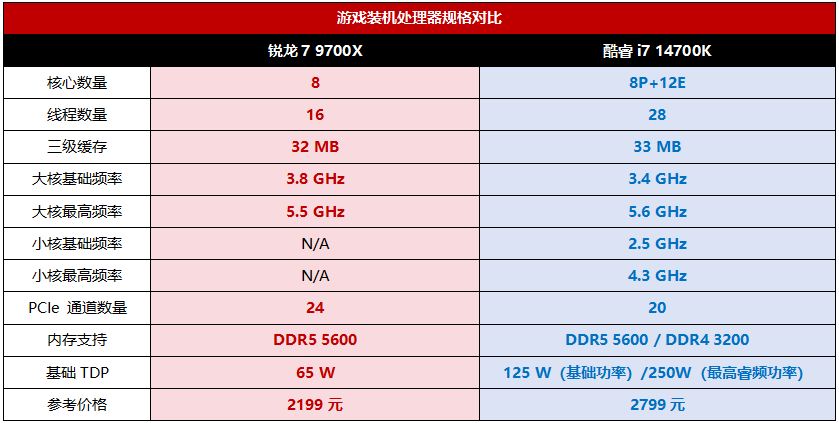 综上所述,从规格来看,锐龙7 9700X更适合主流性能级游戏主机选择,不管是游戏适应性还是实际的使用体验和装机成本,表现都更加优秀。当然,实战测试中又是什么情况,让我们一起来看看吧,