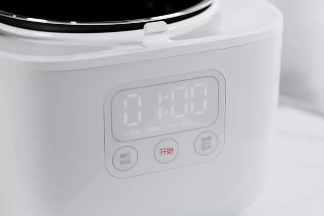正面的操作区域非常简洁,只有预约时间、选择烹饪方式、开始三个按钮,再加上LED显示屏,没有复杂繁琐的按钮,一切都是极简风格。这一点我非常喜欢,本来工作一天就很累了,煮饭当然是越省事越好。