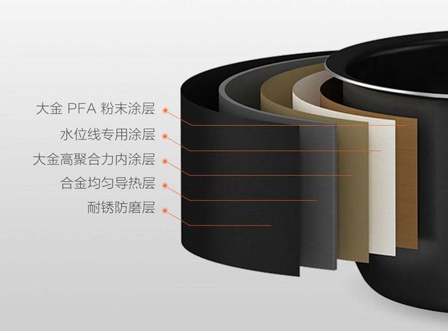 米家小饭煲的内胆拥有5层厚质锅胆,但整体厚度也保持在1.7mm,这些材质不认识也没关系,具体来说就是可以保证受热均匀,而且表面光滑不易粘锅,方便清洁。