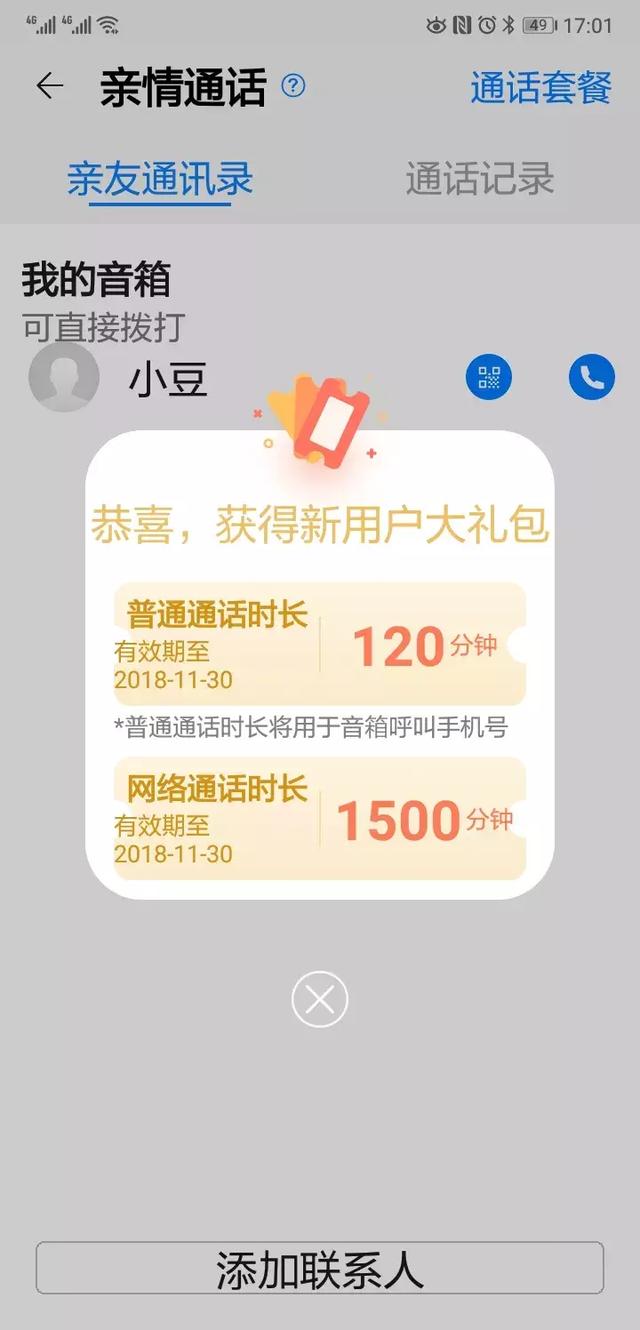 首次使用都会收到免费的通话套餐包,包括网络电话和普通电话,当数据网络信号薄弱时,可自动转移呼叫手机号码