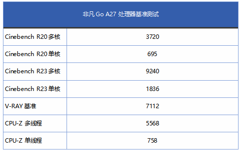 大家知道,一体机因为是放置在用户面前使用且散热空间有限,性能释放通常都较为保守,那么非凡Go A27的表现如何?下面我们从最直观的测试数据来考查非凡Go A27的处理器性能水平。
