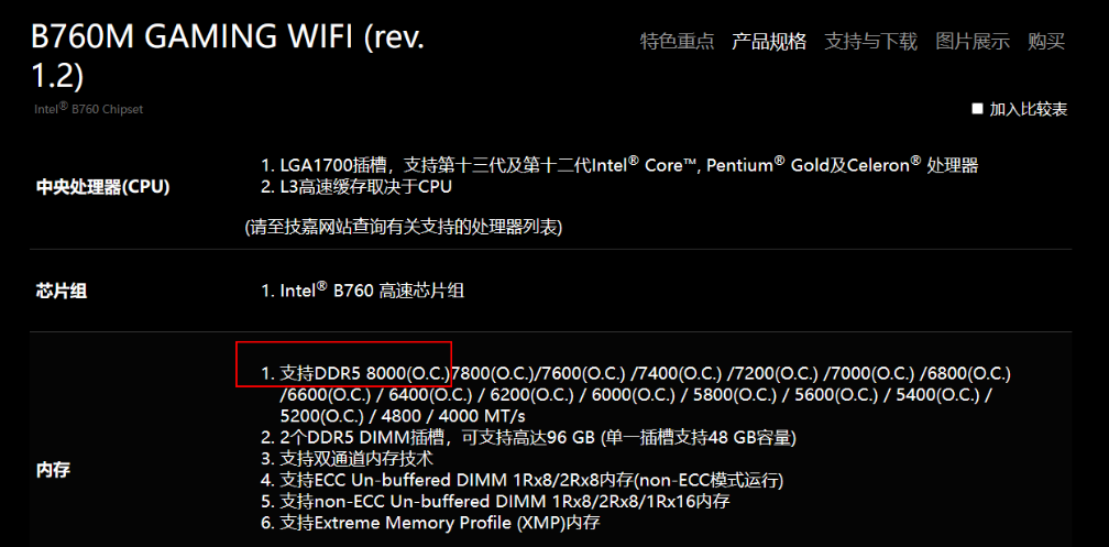 ▲作为性价比级B760主板,技嘉B760M GAMING WIFI凭借强大的电气性能也能轻松支持DDR5 8000高频内存