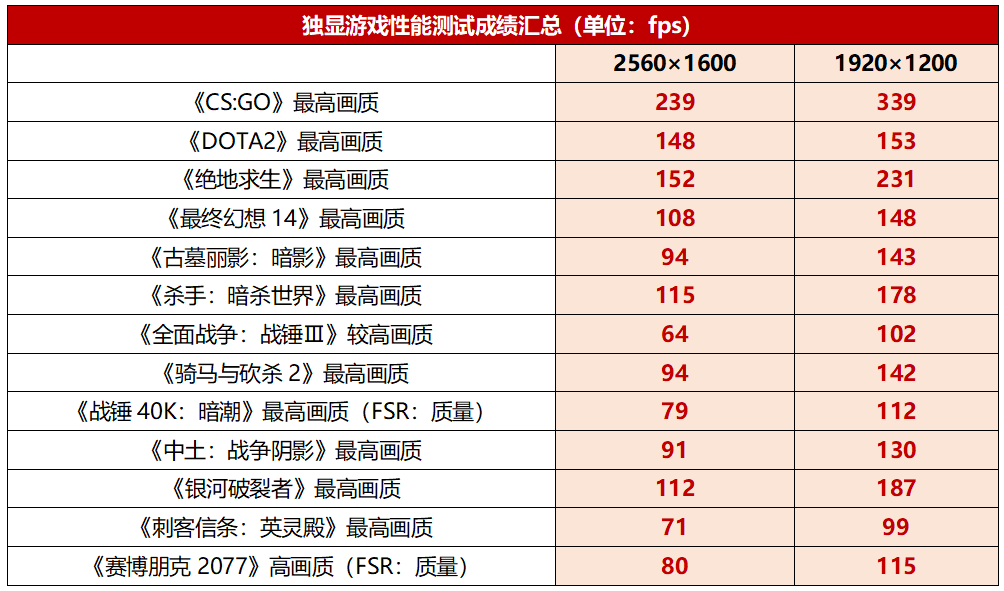 灵刃14 2023配备了一块TGP 140W的RTX 4070独显与锐龙9 7940HS组合,因此在游戏性能方面必然很有看点。我们分别在笔记本屏幕原生的2560×1600分辨率和1920×1200分辨率下运行了测试,前者更贴合玩家实际游戏的环境,而后者降低显卡瓶颈效应后更能展现出锐龙9 7940HS在游戏中的性能释放情况。