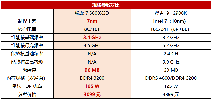 AMD在4月20日正式发售了基于3D V-Cache缓存技术的锐龙7 5800X3D,将三级缓存史无前例地提升到了96MB之巨,从而实现了游戏性能飞跃,一举成为当下游戏性能最强的处理器。不过,Intel方面在售的旗舰U酷睿i9 12900K在频率方面也很是抢眼,广受“高频至上”游戏玩家的拥簇。那么如果要打造一台可以提供顶级游戏体验的电脑,选它们俩其中的哪一款更合理呢?我们不妨来全面分析PK一番。