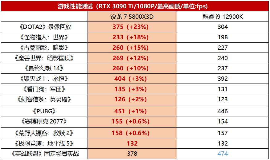 锐龙7 5800X3D帧率优势最高可达23%!