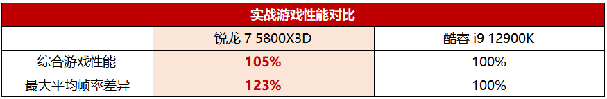 综上所述,从架构先进程度和游戏适用性来看,拥有目前游戏U中最大三级缓存的锐龙7 5800X3D明显比酷睿i9 12900K更适合用来玩游戏,所以游戏U架构这一局是锐龙7 5800X3D完胜。