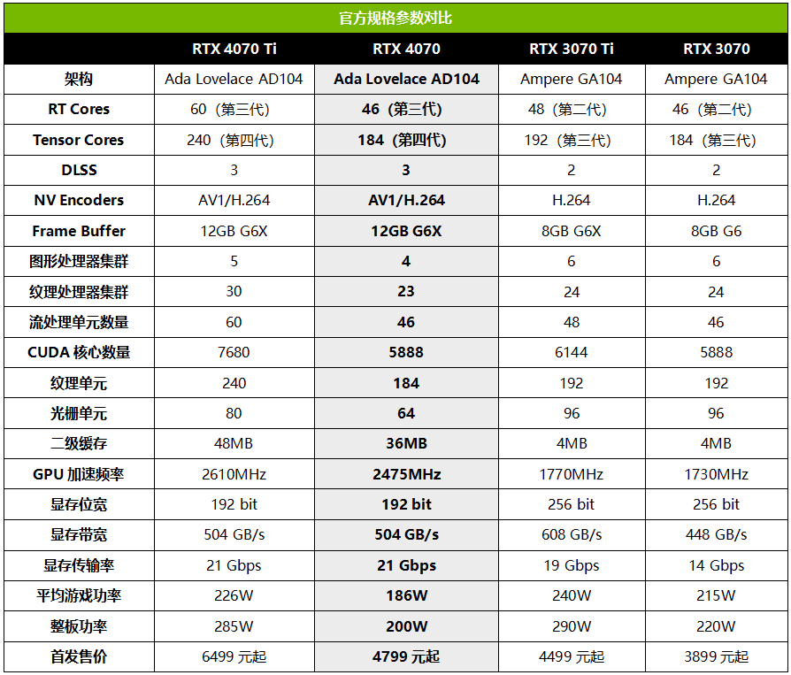 从总体来看,RTX 4070差不多比RTX 3070 Ti强20%,又比RTX 4070 Ti弱20%的水平,再次印证了NVIDIA给RTX 4070定位的超高精准度。