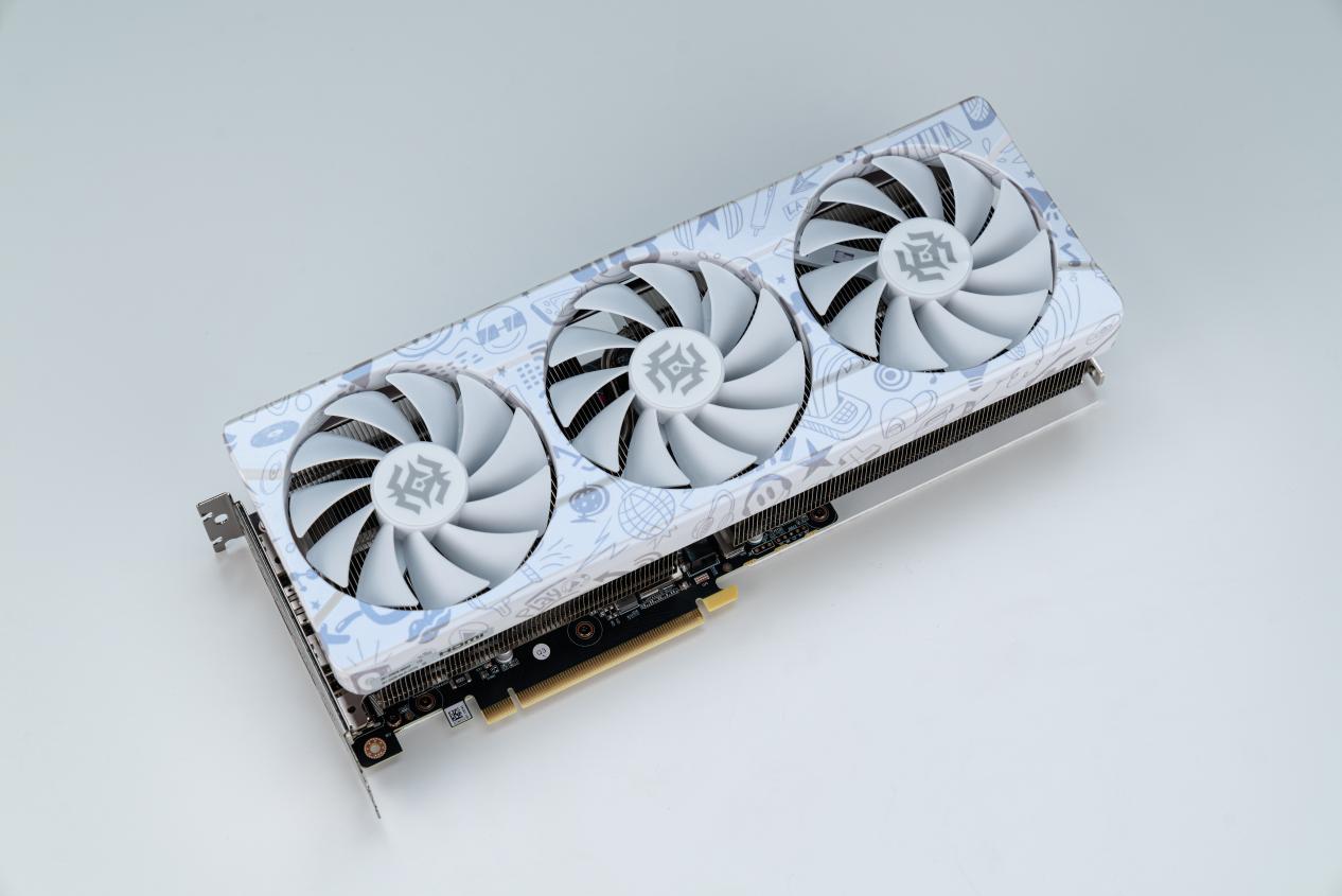 这款索泰RTX 4070 X-GAMING OC欧泊白采用了非常独特的配色,搭配涂鸦风格的潮牌外观设计,从不同的角度查看显卡能获得不同的视觉体验,装在海景房机箱中特别养眼。同时索泰RTX 4070 X-GAMING OC欧泊白的做工用料也非常的扎实,确保GPU能在大幅超过公版的频率上运行的同时,还能允许玩家通过超频获得更高的性能表现。在超强三风扇散热器的加持之下,即便是考机测试中GPU长时间满载的情况下,核心温度也不超过55℃,这是相当出色的散热性能了。