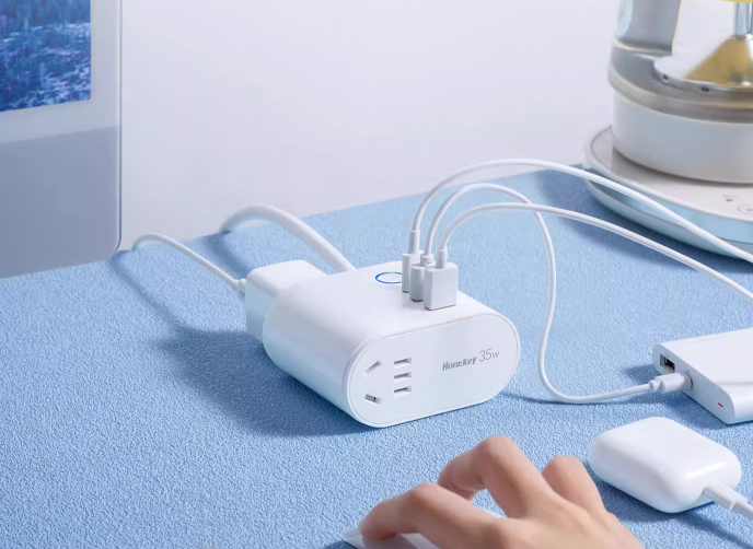 航嘉充吧灵动A35在保持较为小巧、紧凑机身,具有不错便携性的基础上,将3个USB接口以及2组5孔插孔结合在了一起,能同时连接5个设备,扩展性能非常突出。同时航嘉充吧灵动A35的USB-C接口支持快充,最高输出功率达到了35W,就算是三个USB接口同时使用,依然可以提供最高同上的输出功率,能保证优秀的充电效率。与此同时2组5孔插孔的最大功率达到2500W,轻松满足大功率电器、设备的使用需求。