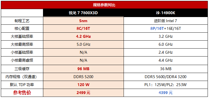 那么分析了这么多,实际的游戏中到底是酷睿i9 14900K暴增功率换来的高频率更好,还是锐龙7 7800X3D的96MB超大三级缓存更给力?下面就来实战对比。