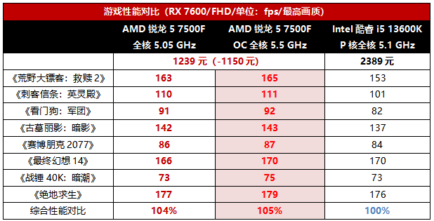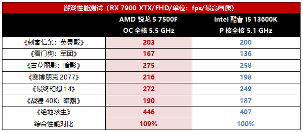 越级胜利!锐龙5 7500F综合游戏性能压制酷睿i5 13600K