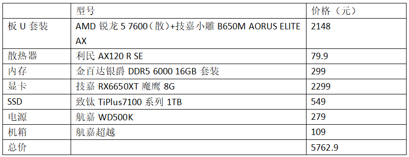 锐龙7000平台推出之后,虽说处理器定价本来比较厚道,可是与之配套的600系主板和DDR5内存价格偏高,所以就有很多用户觉得锐龙7000主机装机成本高,影响了他们的购机欲望。其实现在相关硬件的价格都下来了,5000多元就能装出一套性价比出色的中端游戏配置,下面就来了解一下。