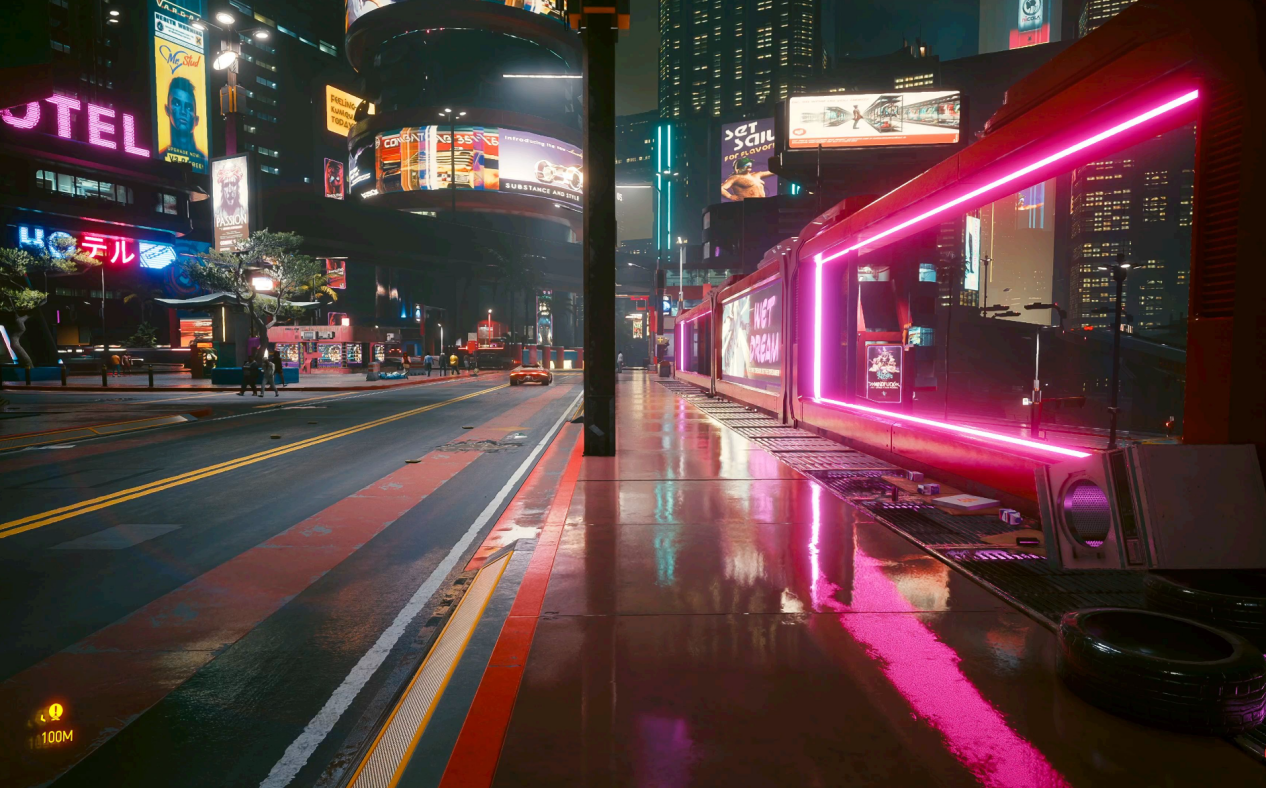 当然AFMF也可以与FSR 2.0一起使用。我们在《赛博朋克2077》中将AFMF与FSR 2.0同时打开,使用RX 6750 GRE 12G显卡时,1080P分辨率下游戏画面帧率从39fps暴涨到了176fps,提升幅度达到了351%;2K分辨率下画面帧率从24fps提升到了136fps,提升幅度为466%。从默认状态下卡顿的画面,直接变成了超流畅的画面,游戏表现可以说是提升了数个档次。