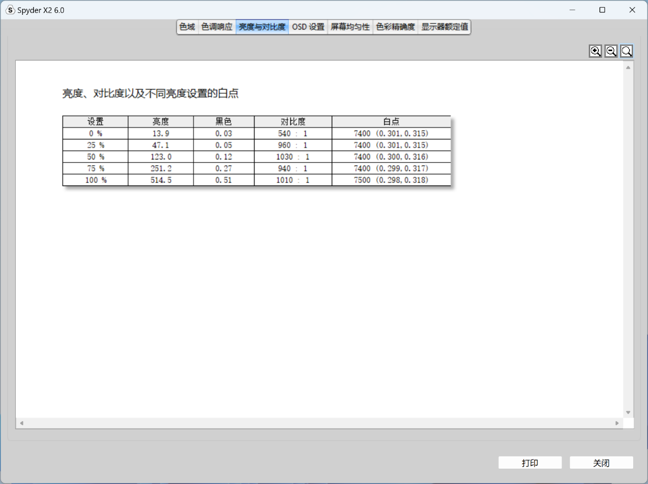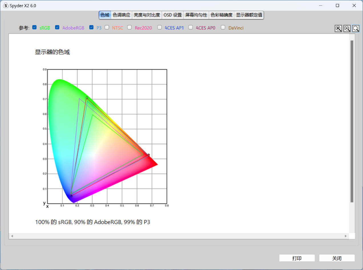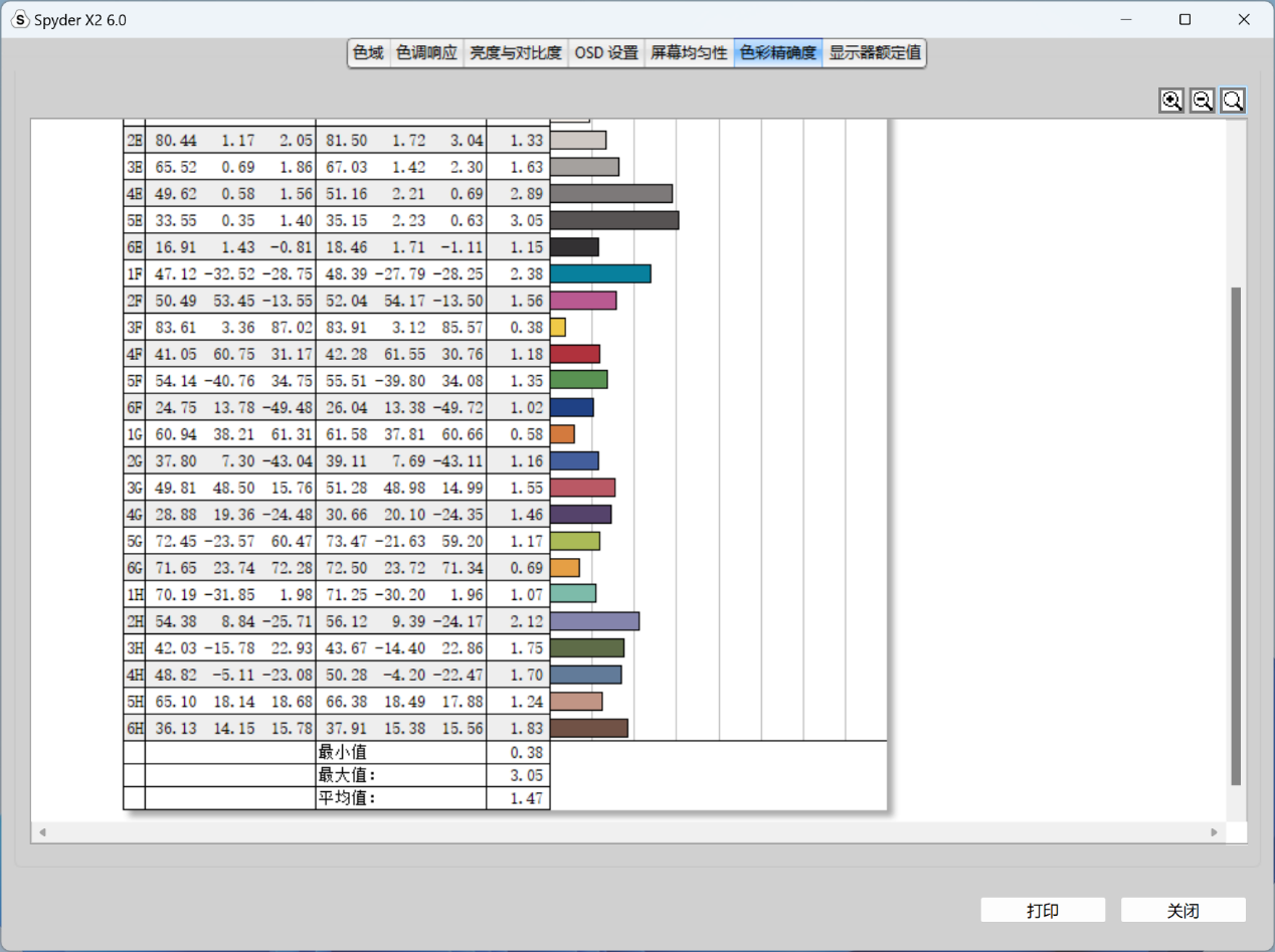 屏幕方面,我们用Spyder X2进行了测试。色域方面,铭凡V3的色域覆盖范围为100%sRGB、90%AdobeRGB、99%的P3色域,Spyder X2在室内光线环境下,测试会存在一定误差,因此可以看出这款屏幕达到了官标的100% P3广色域。亮度方面,实测屏幕最高亮度可达514nits,对比度最高1010:1。色彩精准度方面,铭凡V3的平均ΔE为1.47,色准接近专业显示器水准。
