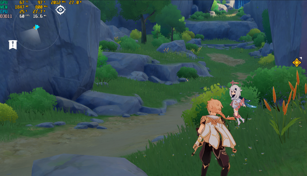 铭凡V3在《原神》中开启2.5K中画质,关闭动态模糊和垂直同步,野外跑图的平均帧率为46fps,1% Low帧率为36fps。画质调整到1080P/高画质/默认设置,帧率稳定在60fps流畅无压力。另外几款游戏实测成绩见下方表格。
