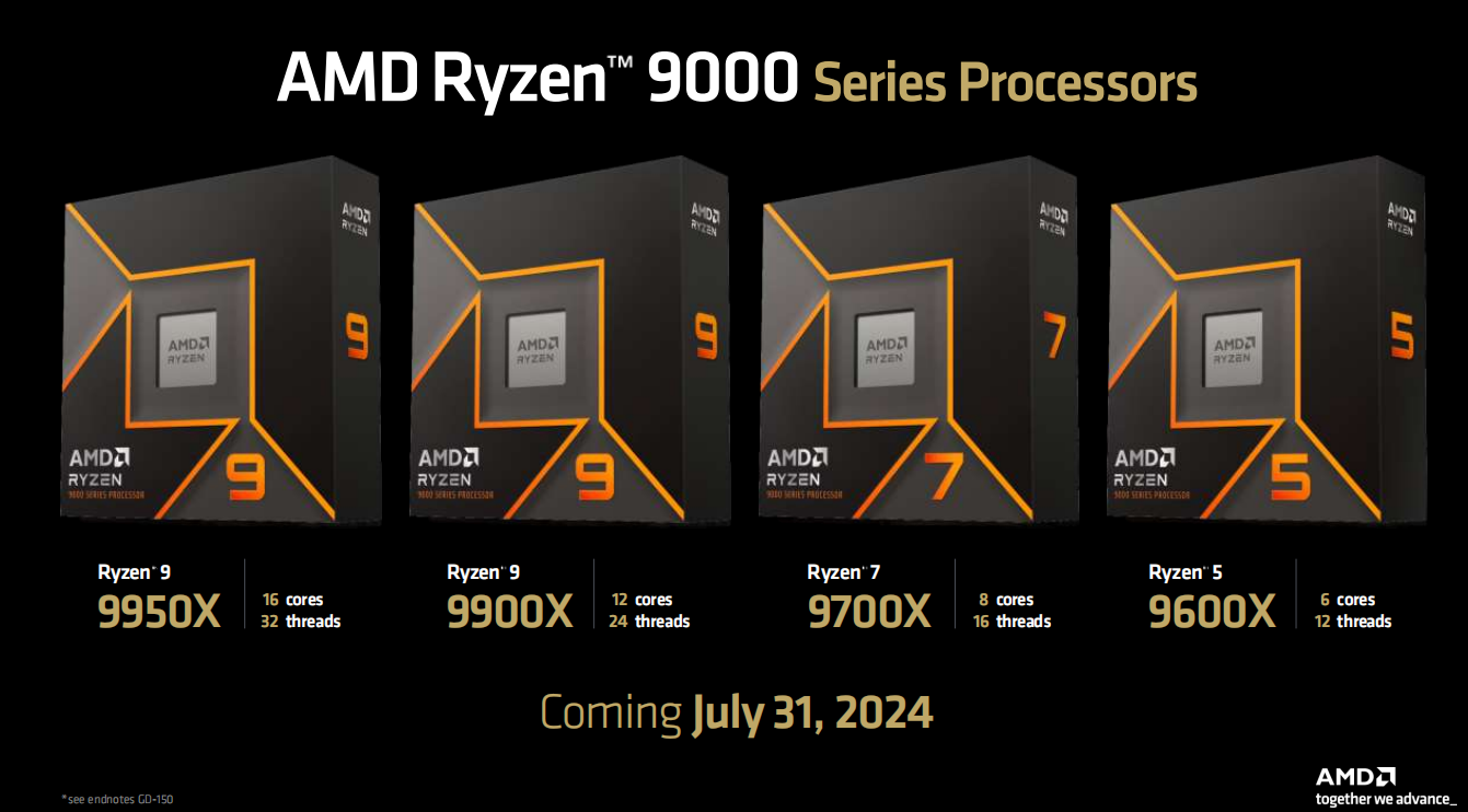 最后,AMD给出了锐龙9000四款首发先锋的上市日期,就在7月31日,那么各位玩家这次是不是一定买呢?