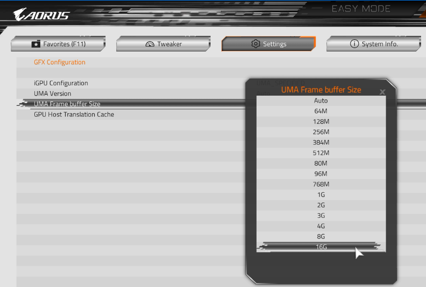 ▲B650E冰雕X可以在BIOS中手动分配Radeon 700M显存容量,最高可达16GB
