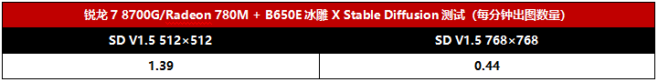 锐龙8000G内置的RDNA3核显也支持Stable Diffusion本地AI出图的GPU加速。从实测来看,Radeon 780M可以轻松支持768×768分辨率的出图,同时速度也达到了旗舰级处理器的5倍以上。可见锐龙8000G搭配B650E冰雕X也是一个不错的入门级高效AI出图解决方案。