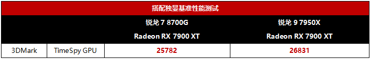 不要忘了,B650E冰雕X提供了PCIe 5.0×16显卡插槽,搭配锐龙7 8700G的同时也可以轻松扩展高端独显。从实测来看,锐龙7 8700G搭配Radeon RX 7900 XT这样的高端独显时,也基本能够发挥出它的全部性能,加上B650E冰雕X本身也拥有极高的电气性能,对独显的性能发挥也提供了足够的保障。