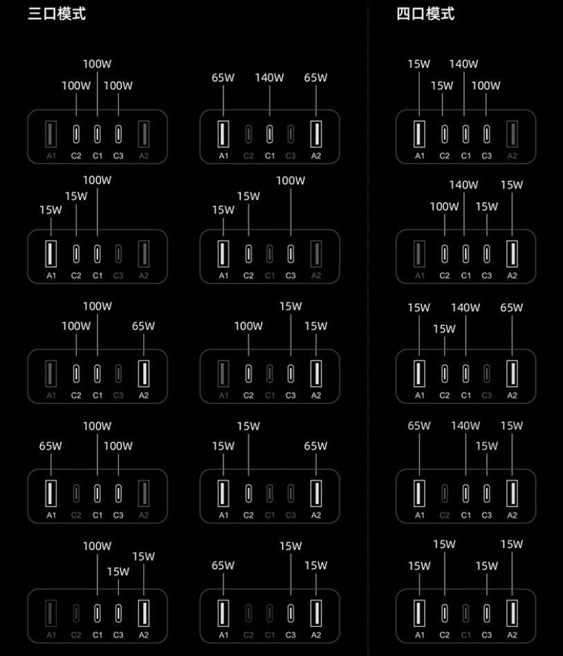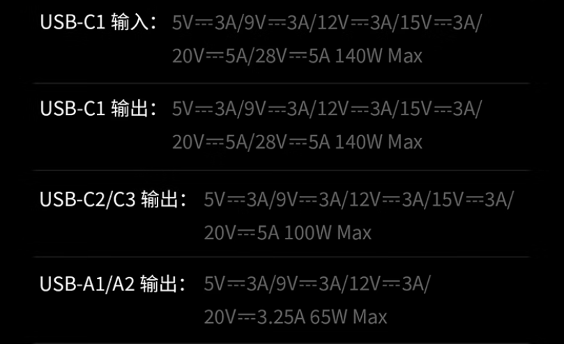 在输出能力上,USB-C 1单口最高可以输出140W功率,USB-C 2/3单口输出功率为100W,USB-A 1/2单口的输出功率为65W。3个USB-C接口同时使用时,航嘉Q60迷你电站火力全开可以提供高达300W的输出功率。不管是最高充电功率达到140W的16英寸MacBook Pro、100W的大疆无人机还是45W的各种手机,航嘉Q60迷你电站都能确保产品获得最佳的充电效率。