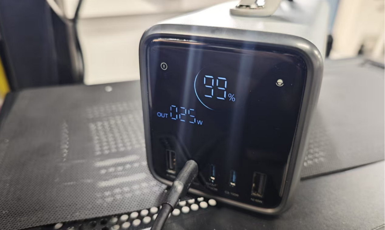 另外,航嘉Q60迷你电站只有用USB-C1接口才能为其充电,最高输入功率高达140W,如用240W线材和充电器为其充电,大约2小时即可充满。我们使用100W线材和充电器为其充电,最高输入功率一直保持在95W左右,从0%到100%大约用了2个半小时,充电效率也是非常不错的。