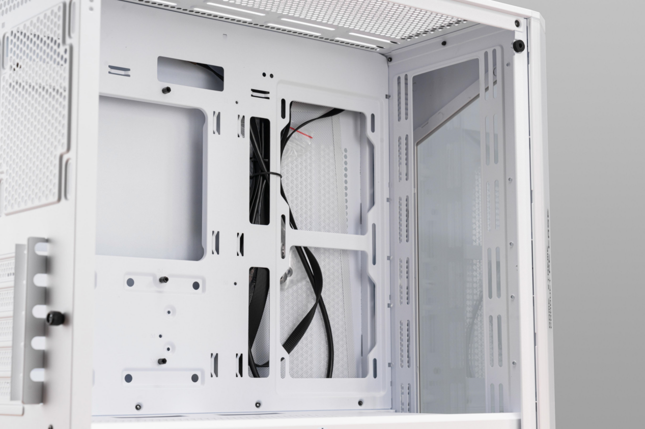 同时航嘉GX760S堡垒在细节上也考虑得相当到位。比如机箱顶部位置预留了更多的空间,让水冷排和高马甲内存的安装不会冲突;在主板和电源仓之间设置了45mm的空间,连接各种线材更方便。