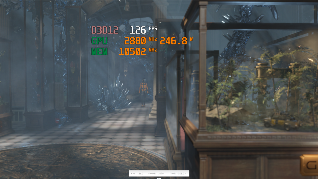 我们知道在开启光线追踪之后,会极大地增加显卡的性能需求,此时RTX 4070 Ti的表现又如何呢?在《古墓丽影:暗影》中,就算是不开启DLSS,4K分辨率下也能获得69fps的画面平均帧率,流畅玩转游戏毫无压力。要是开启DLSS 2质量模式,画面帧率更是提升到了106fps,提升幅度在53%以上。