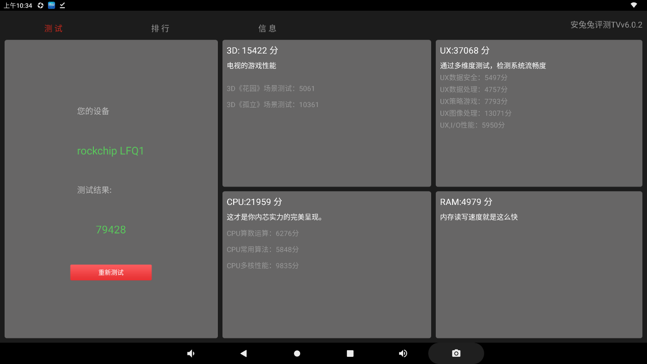 跑分实测中,它在安兔兔电视评测中的跑分为79428,在安兔兔评测中的得分为162490。从测试结果来看,它的性能相对于主流手机而言确实有一定差距,但是正如我们之前说的,它在一众电视盒子的表现已经算是比较靠前了。