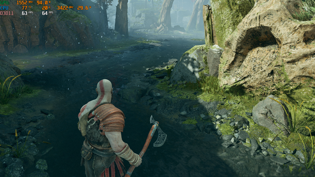 ▲《战神4》,1440P高画质下灵耀X双屏Pro 2022平均帧速64fps,流畅。