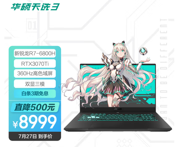 华硕天选3系列是今年游戏本市场里的热门产品,而该系列中的天选3Plus目前正在京东自营平台做促销活动,锐龙7 6800H+RTX 3070Ti配置款来到了8999元的夸张历史低价!性价比很高!喜欢大屏高性能游戏本的用户不容错过~下面是该机的参数详情。