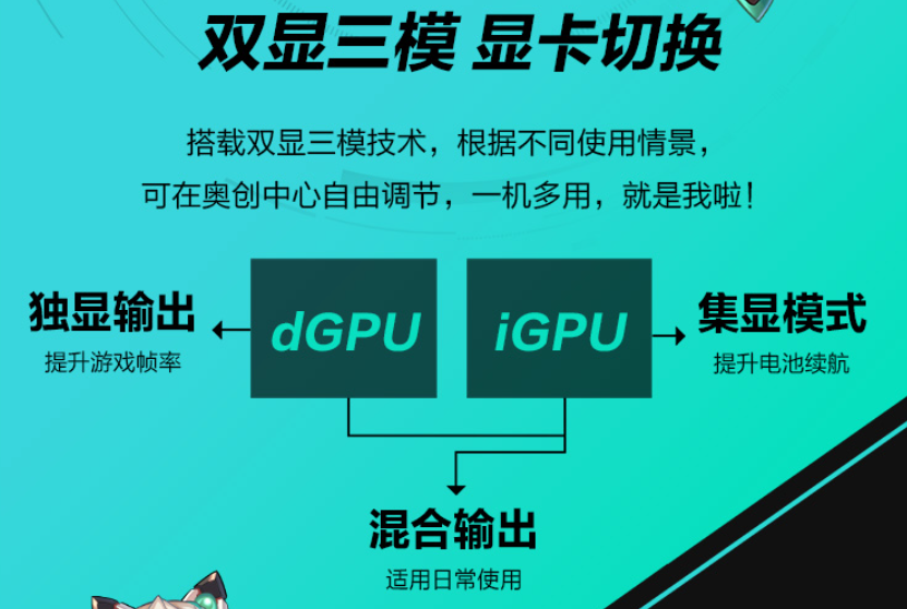 另外,作为最新一代的华硕游戏本,这块屏幕也支持双显三模显卡切换,玩家可以根据使用情况,切换使用独显输出/混合输出/集显模式。顺便说一句,独显输出对电竞游戏性能增强明显,比如《CS:GO》和《LOL》,配合360Hz屏幕,高帧速+高刷新率,体验更爽快。