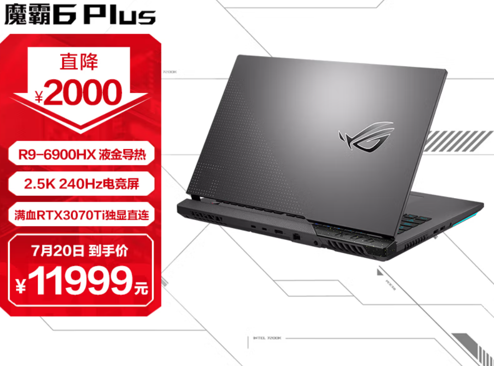 另外,预算更高,想买一台RTX 3070Ti独显ROG游戏本的用户,则可以关注ROG魔霸6Plus,该机目前也在京东自营促销,具体配置是:锐龙9 6900HX/RTX 3070Ti 150W/16GB DDR5 4800MHz/1TB PCIe4.0 SSD/17.3英寸 2.5K分辨率 240Hz 3ms广色域,促销价格11999元,感兴趣的小伙伴可以复制下面的链接查看详细信息。