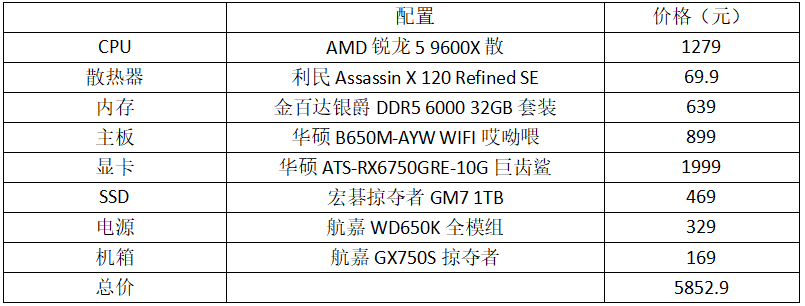 在了解了必买锐龙9000的5大理由之后,对于年底装机该选什么CPU相信大家都清楚了。接下来,我们就围绕着当前最为热门的锐龙7 9700X和锐龙5 9600X打造出两套高性价比游戏配置,年底有装机需求的玩家可别错过。