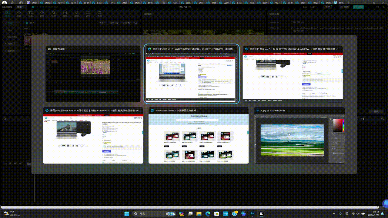 实际在日常使用中,不管是办公还是娱乐,多开应用十分常见,对此,牛叔也对星Book Pro 14进行了多任务高负载测试:打开数十个网页,运行剪映进行视频转码,并在Ps中载入十数张高分辨率图片,应用操作、任务切换之间依然流畅不卡顿。当然,能有这样的表现,也和评测机搭配的大容量高频内存息息相关,要知道我们评测的星Book Pro 14不但配备了32G大容量内存,而且是 LPDDR5X 7467MHz高频规格。
