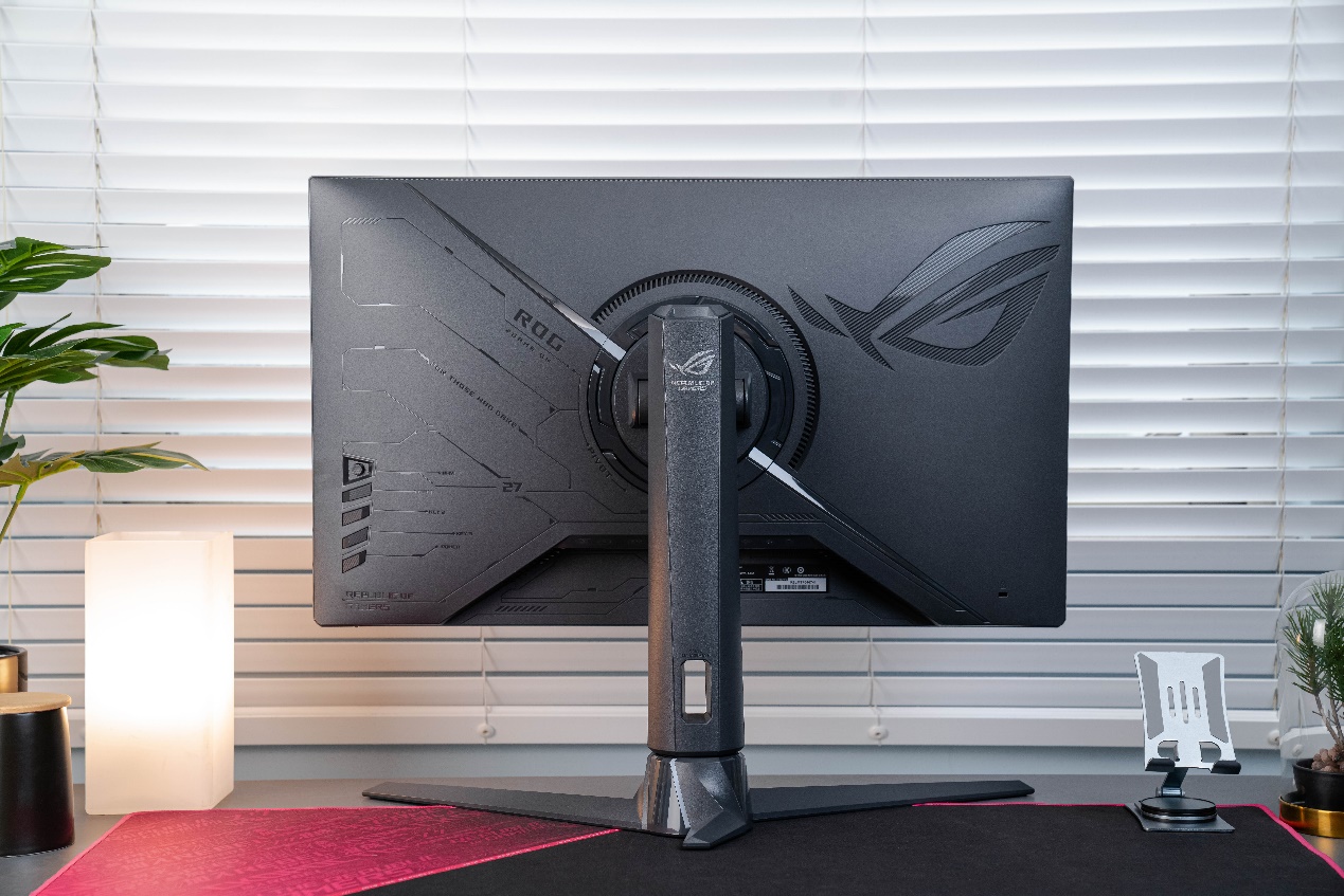为了更加贴近电竞玩家的使用需求,ROG STRIX XG27AQMR电竞显示器这次在支架的顶部加入了一个1/4英寸三脚架插孔,玩家可以非常方便的安装摄像头、相机或额外的显示器等,对于有特殊游戏需求或直播的玩家来说,可以算得上是相当贴心的设计了。