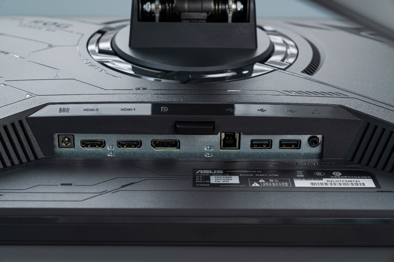 接口方面,ROG STRIX XG27AQMR电竞显示器配备了1个DP1.4接口、2个HDMI 2.0接口、2个USB 3.2 Gen 1 Type-A以及1个3.5mm音频接口。稍微有点遗憾的是,显示器并不带Type-C接口。