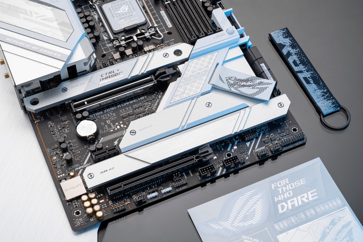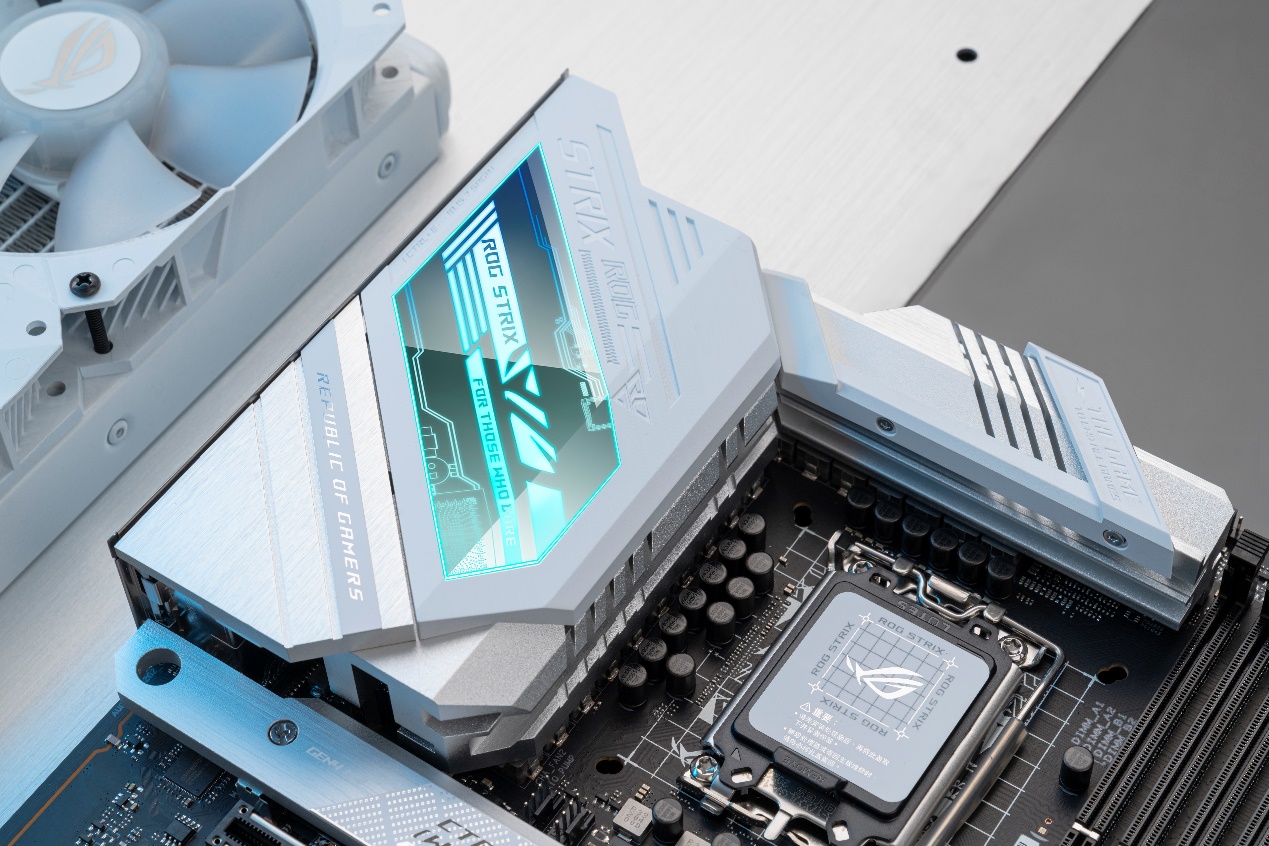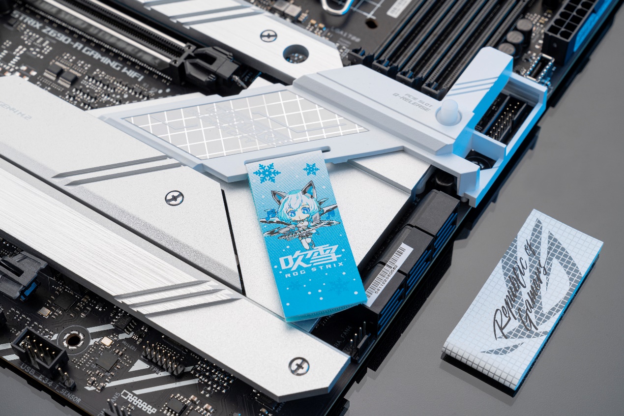 ROG吹雪系列主板以高颜值著称,ROG STRIX Z690-A GAMING WIFI 吹雪主板则为玩家们带来了全新的战甲设计,在保留之前银白战甲的家族化特色时,还加入了新的白色覆盖件,整块主板的机甲感更强,信仰感拉满。主板散热装甲的鳍片造型也进一步和雪武战姬形态进行了统一,代入感更强,散热效果更好。