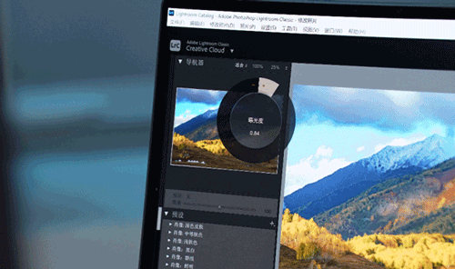 △(动图)借助华硕创意旋钮,我们在LrC中能很快捷地实现曝光度和阴影参数等调节