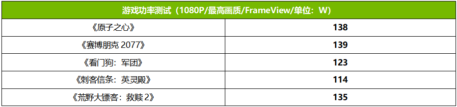 RTX 4060 Ti官方给出的平均游戏功率大约为140W,那么实测的情况又如何呢?我们用FrameView工具在游戏中记录并计算出平均功率。从结果来看,DUAL-RTX 4060 Ti的平均功率确实都没有超过140W,一些游戏中甚至只有110W~120W水平,可以说能效比非常出色。