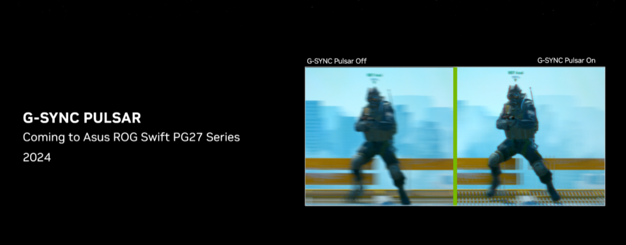 同时,NVIDIA还发布了全新的G-SYNC PULSAR技术,此项技术融合了可变刷新率(VRR)和低动态模糊技术(ULMB)的优势,可以大幅提升游戏流畅度和高速运动画面的清晰度,给玩家带来更好的电竞游戏体验。首批采用此技术的ROG Swift PG27系列显示器将会在2024年内上市。