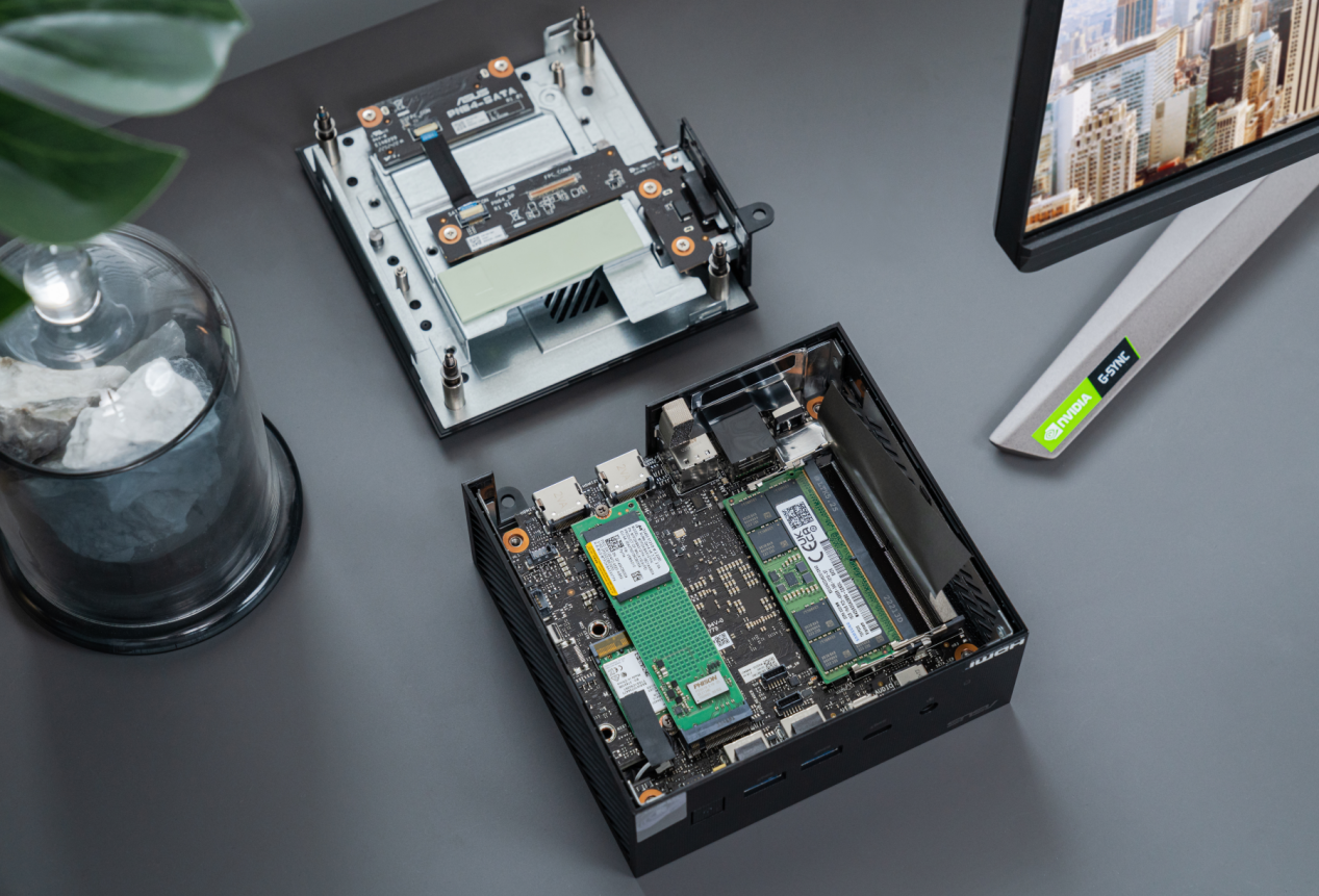 华硕破晓x酷睿版Mini PC还预留了一条内存插槽,实现最大64GB内存容量。产品还预留了2.5英寸SSD或机械硬盘的安装区域,便于用户扩展大容量的存储设备。